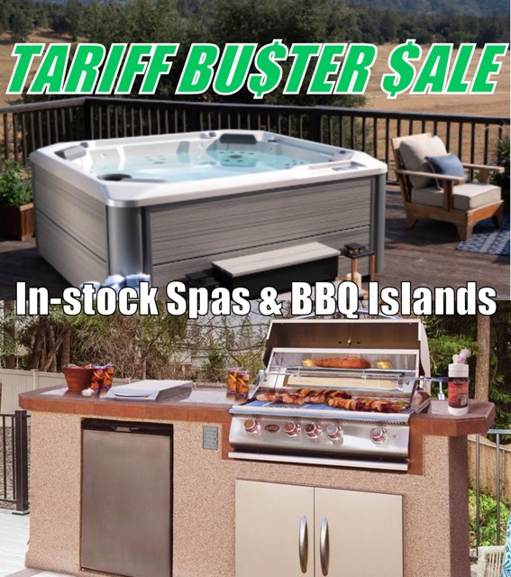 – Pre-Tariff Pricing – Lock in the best deal before costs go up! – No Waiting – In-Stock Inventory – Get your hot tub or BBQ island fast! – Financing Available – Affordable monthly payments to fit your budget!